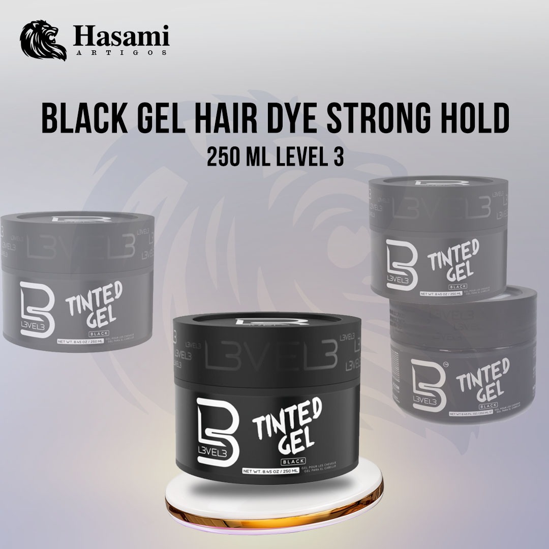 Gel para Cabelo com Cor L3VEL3 – Preto | Cubra os Fios Brancos e Realce o Seu Estilo com uma Fixação Forte